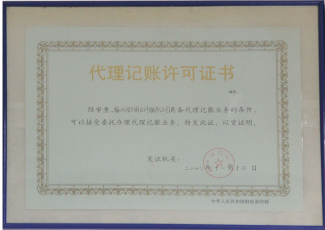 代理記賬許可證書
